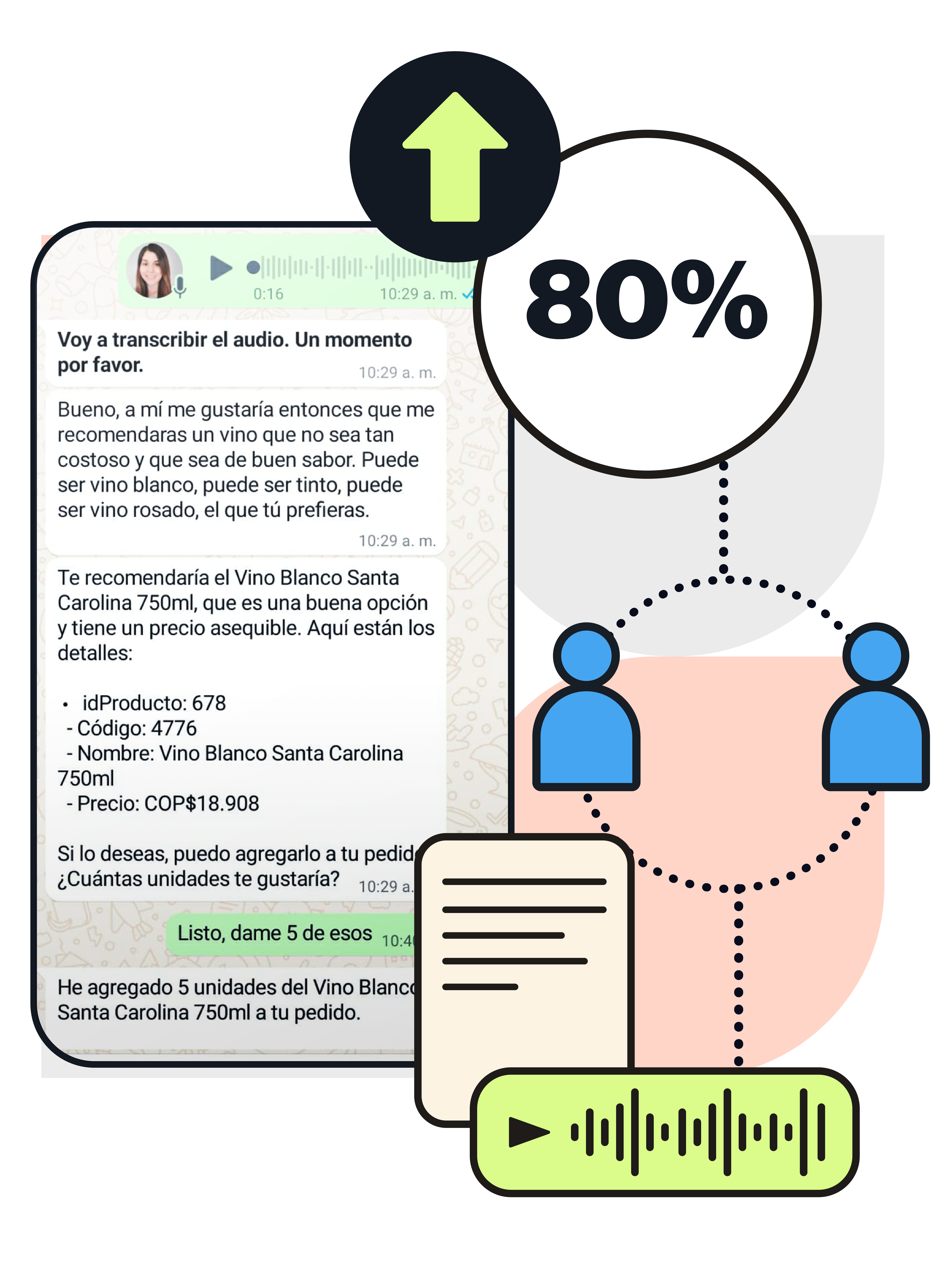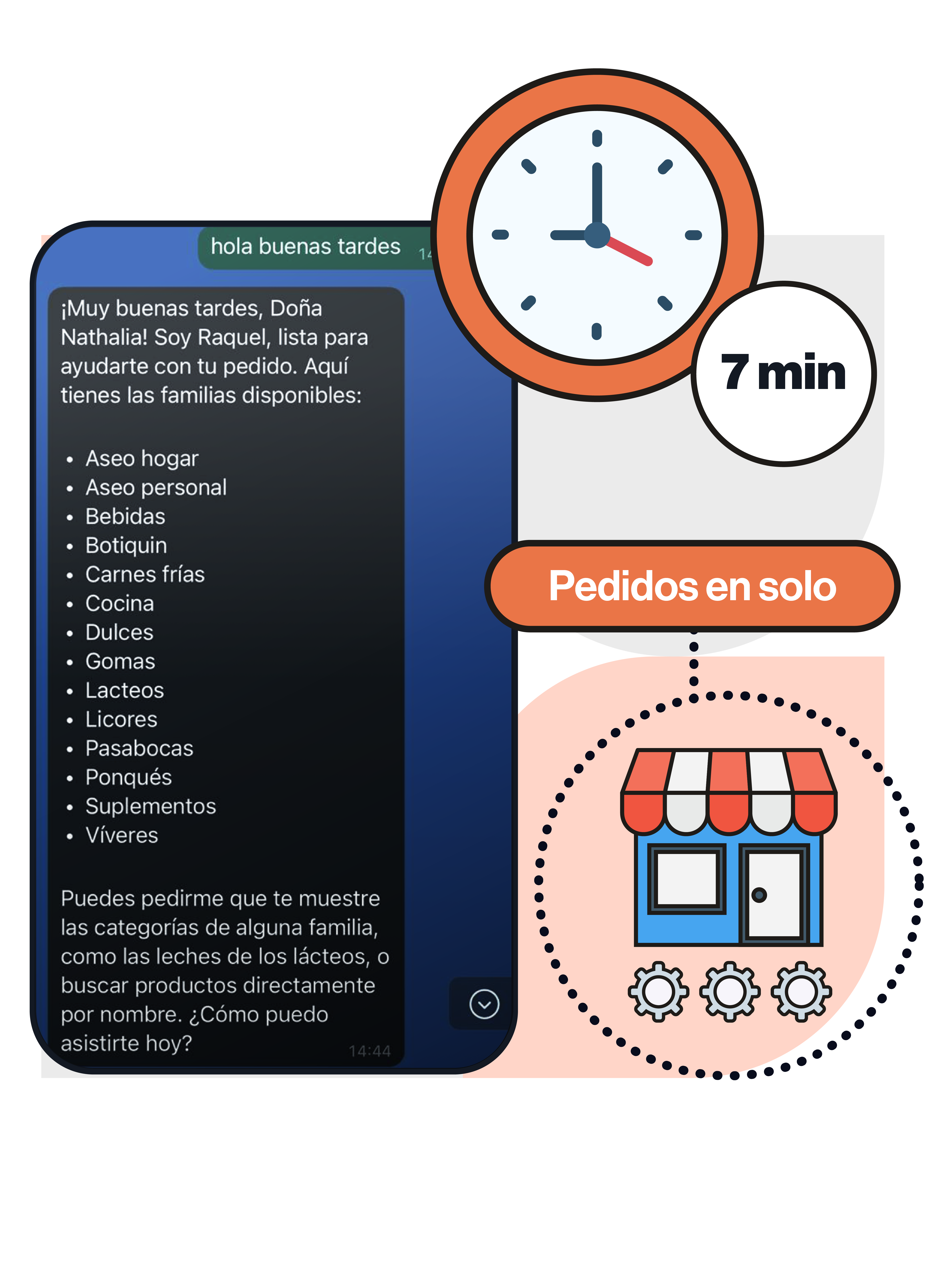 Permite a los tenderos realizar pedidos de la forma en que siempre lo han hecho: enviando notas de voz, escribiendo mensajes de texto, o incluso enviando fotos de listas escritas a mano. El asistente procesa esta información y genera el pedido de manera precisa y rápida.